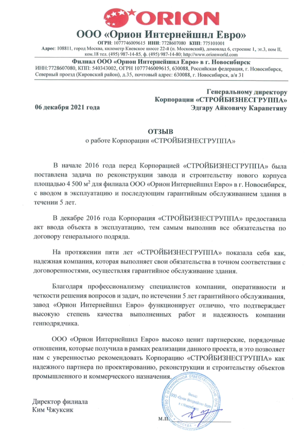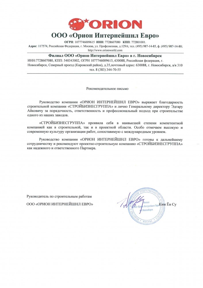 Мы заключили контракты с иностранными Заказчиками, такими как «Orion International Euro» из Кореи и концерном «Heineken», что подтверждает высокий уровень нашей работы.