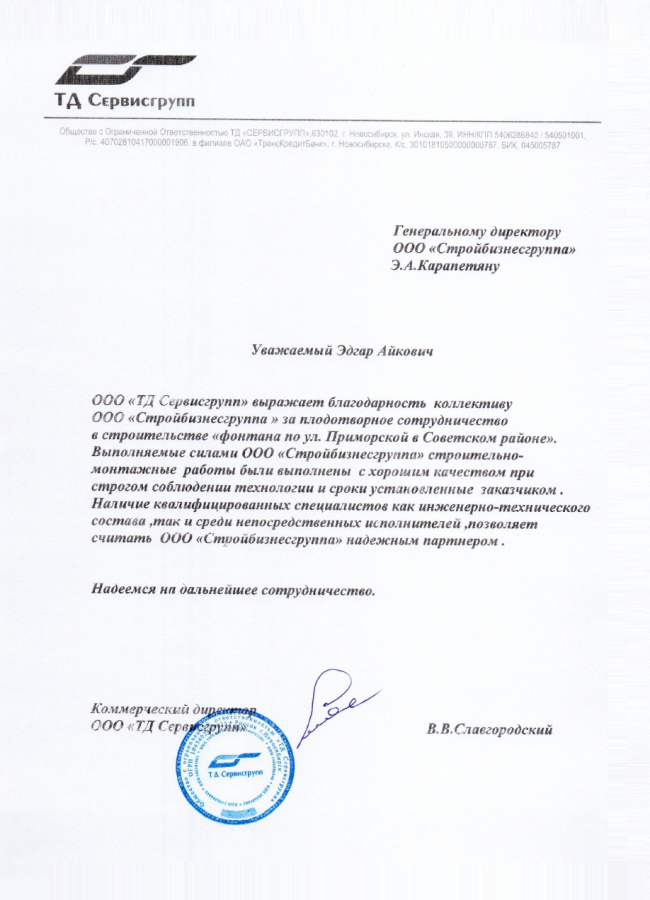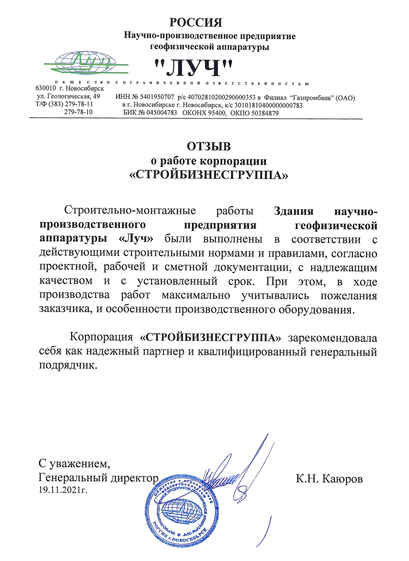 Убедиться в качестве проектной документации, вы можете, записавшись к нам на экскурсию на построенные по ней коммерческие объекты. Также мы готовы предоставить личные контакты заказчиков, чтобы вы могли напрямую получить отзыв о работе с ООО «СТРОЙБИЗНЕСГРУППА»